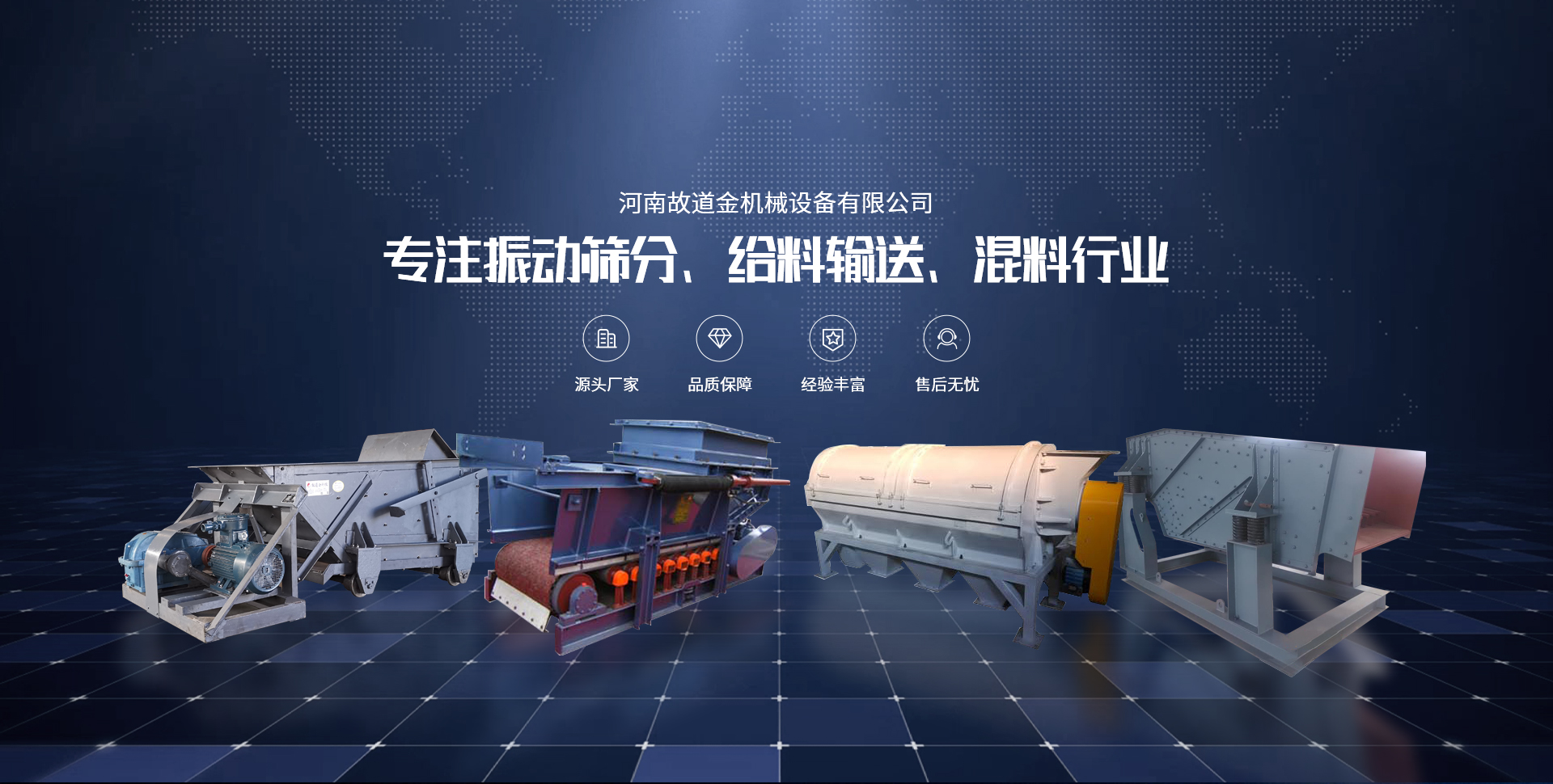 Company Profileky官方网站是一家研发、生产、销售和服务集成为一体的创新型企业,公司专注于振动筛分、给料输送、混料行业多年,拥有丰富的一线生产技术。是新乡市有能力承建从破碎到输送筛分整条生产的公司之一。 公司主营轻重型直线振动筛、圆振筛、强力筛、概率筛、摇摆筛,等各种系列的筛机以及各种规格型号的配套产品如振动给料机、斗式提升机、垂直振动给料机、带式给料机、螺旋提升机、构成完整的破碎、输送、筛分系统生产链,并已广泛应用于煤炭、冶金、矿山、制药、食品、化工、建材、电力、环保等众多领域。 故道金机械视质量为生命,奉顾客为上帝,并一贯遵循对每一道工序负责、对每一台产品负责、对每一位用户负责的质量方针,竭诚为用户服务。我们所作的一切将***为您着想,我们深信:质量是打开市场的金钥匙;我们深信:对您奉献一颗真诚的心同样会得到真诚的回报!热烈欢迎新老用户、科技专家、行业志士与我公司建立发展各种形式的业务关系,故道金机械竭诚期待与广有志之士携手合作,共创大业。